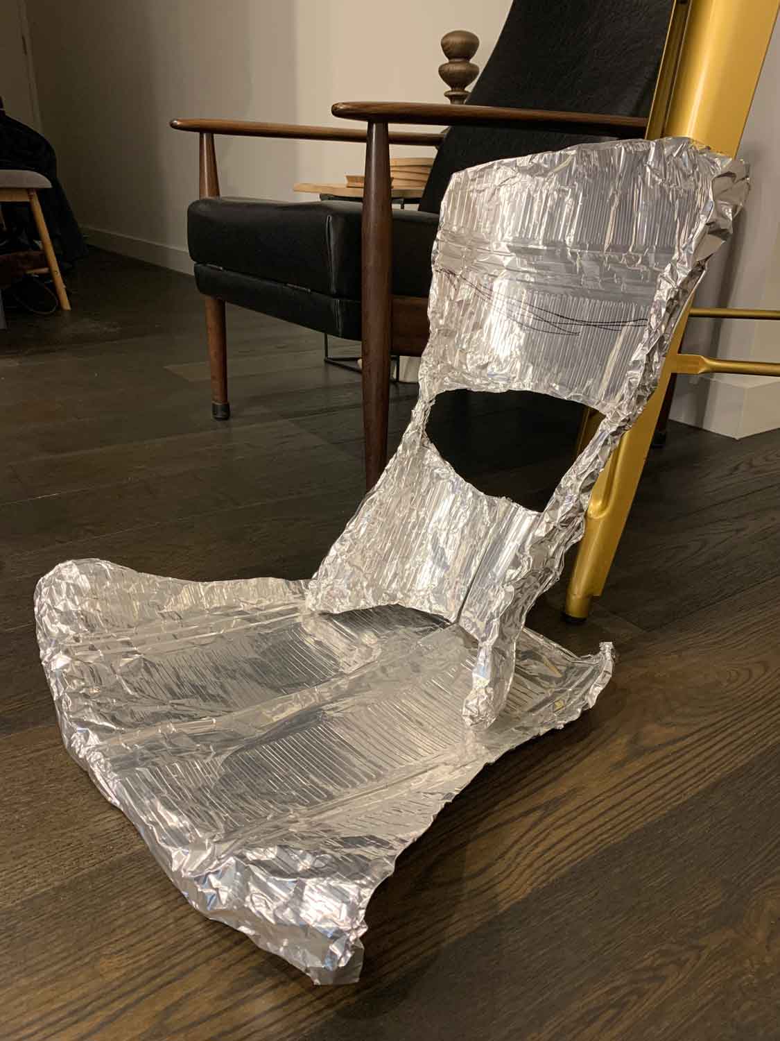 The scale model of my new chair - due to the lockdown I can’t work in the studio, so I make use of the Alfoil to make one :)