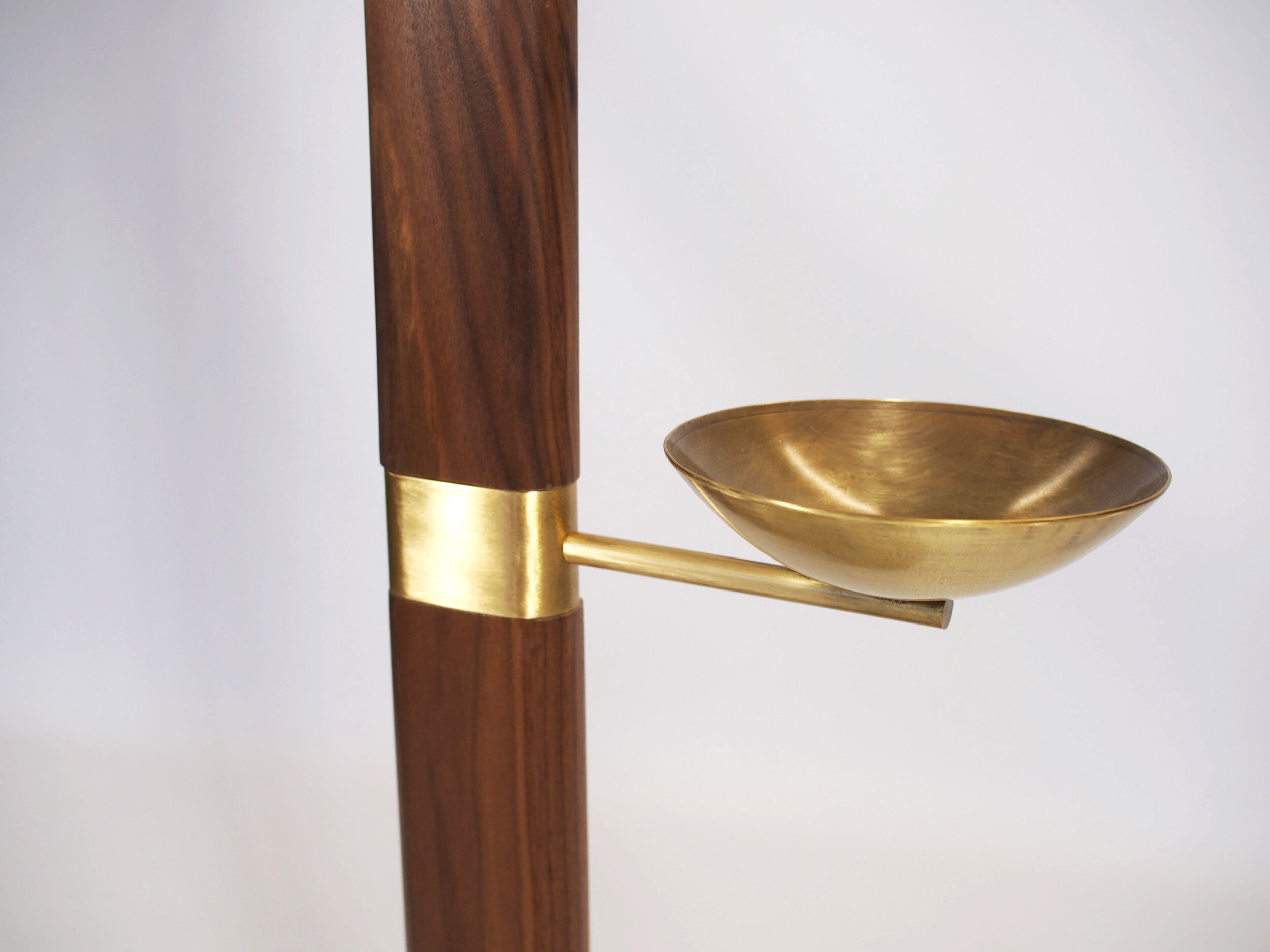 slender pill-shaped form of the coat stand informs other parts, such as the hand-formed, cantilevered brass holster for a crook handle or