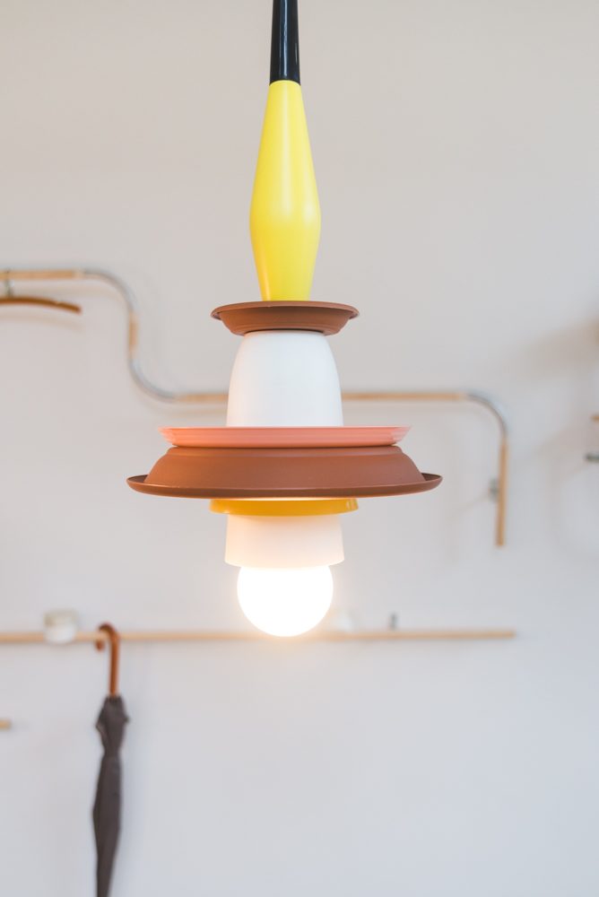2021, Takeaway containers, paper, steel, paint, broken lamps, 65 x 80 x 60 cm.