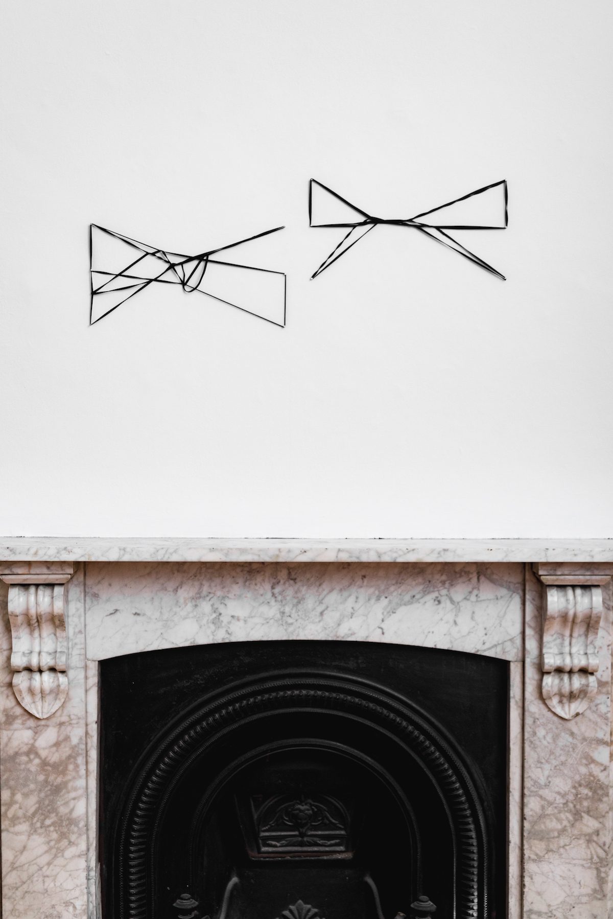 Bufardeci’s project is inspired by the game of string figures, or cat’s cradles, which used to be a popular game in primary school playgrounds. Children would make Jacob’s Ladder, Cat’s Whiskers, A Broom, A Teacup or many other figures. Formed with mask elastic and presented in grids, Bufardeci’s string figures are not complete. They come from attempts to make something fully formed but they are tense, slack and entangled.