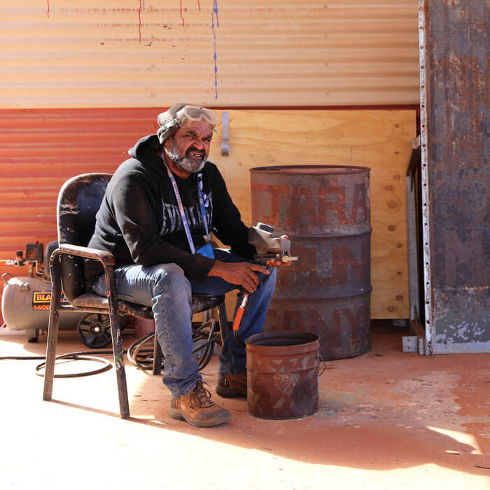 Robert Fielding is from the community of Mimili in the far north west of South Australia, at the base of the Everard Ranges. Fielding also has familial ties to Afghanistan, through his ancestors who helped open up Australia’s interiors as cameleers.