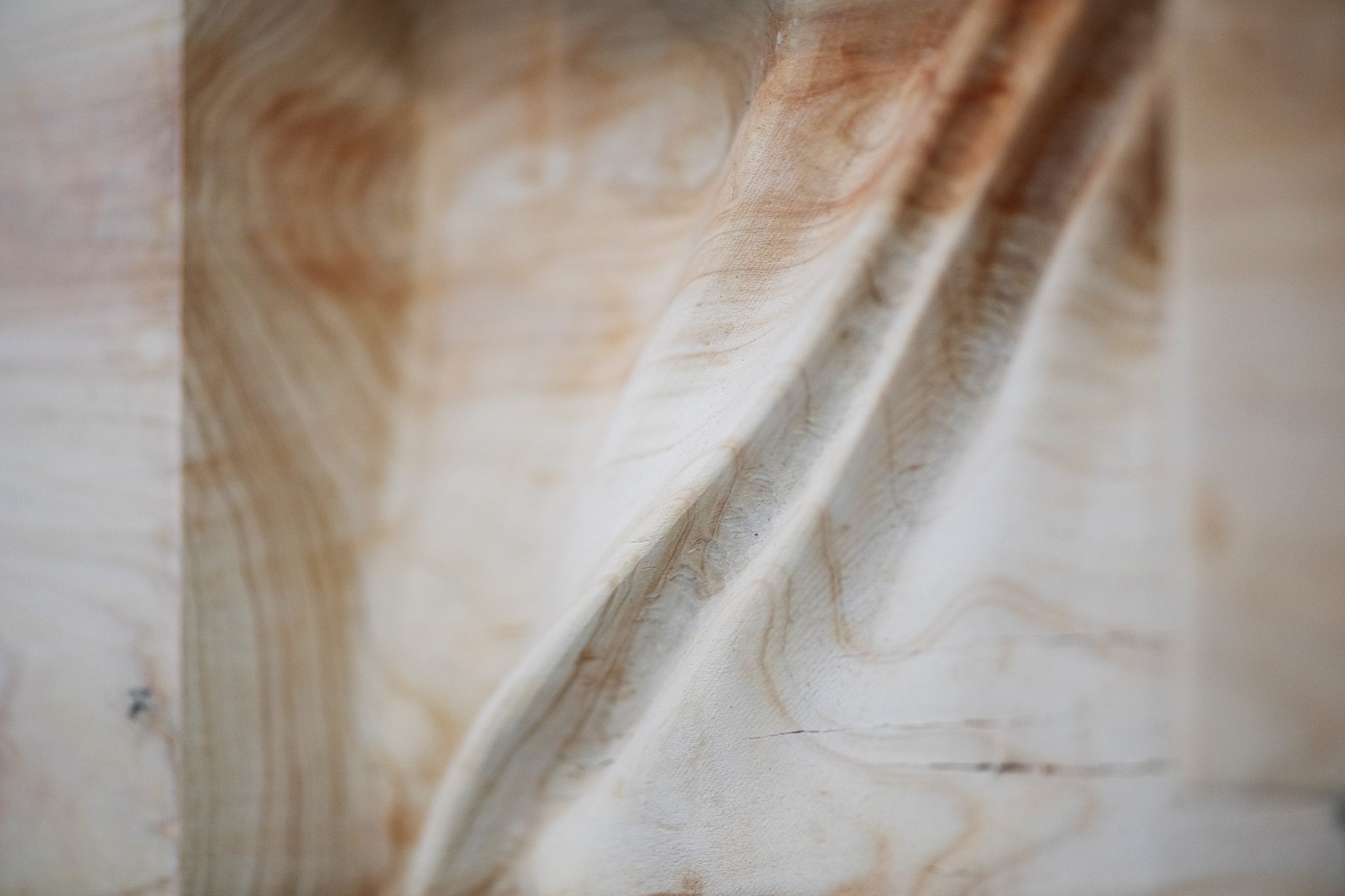 IMAGE > Jeremy Blincoe, Unruliness at the heart #3 [detail], 2022, Monterey Cypress, 60 x 60 x 10 cm. Image courtesy of the