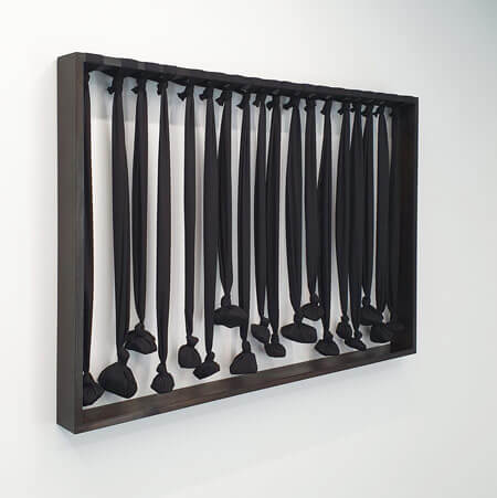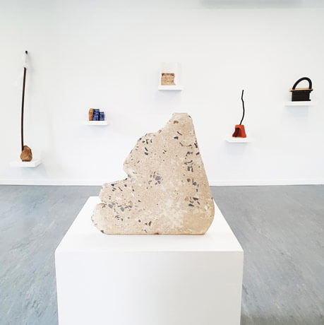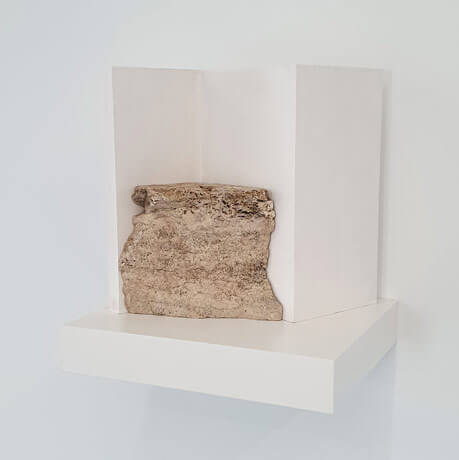 IMAGE > Jonathan Kim, Concrete & Wood with Elastomeric I, 2018, elastomeric pipe insulation, found wooden block and found concrete, 43x45x44cm. Image courtesy of the artist.