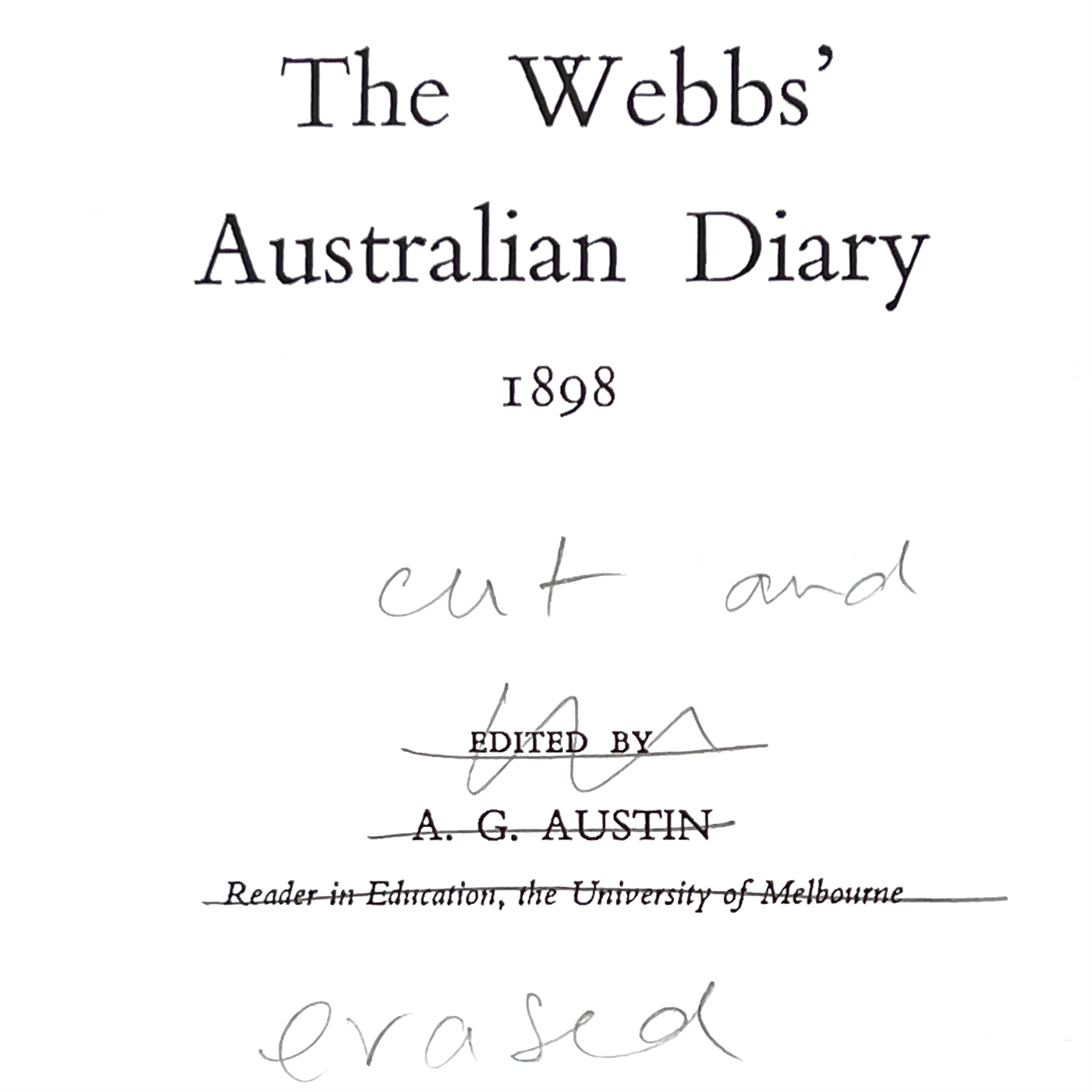 Australia in 1898, met and spoke with almost all the leading political and social figures of the time. The Webbs’ Australian Diary 1898