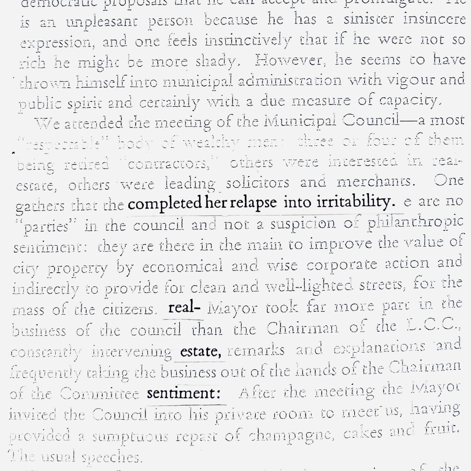 The diary is, as I had hoped, a gold mine of found-words. Beatrice Webb’s impressions of Australian society, its ruling class, its
