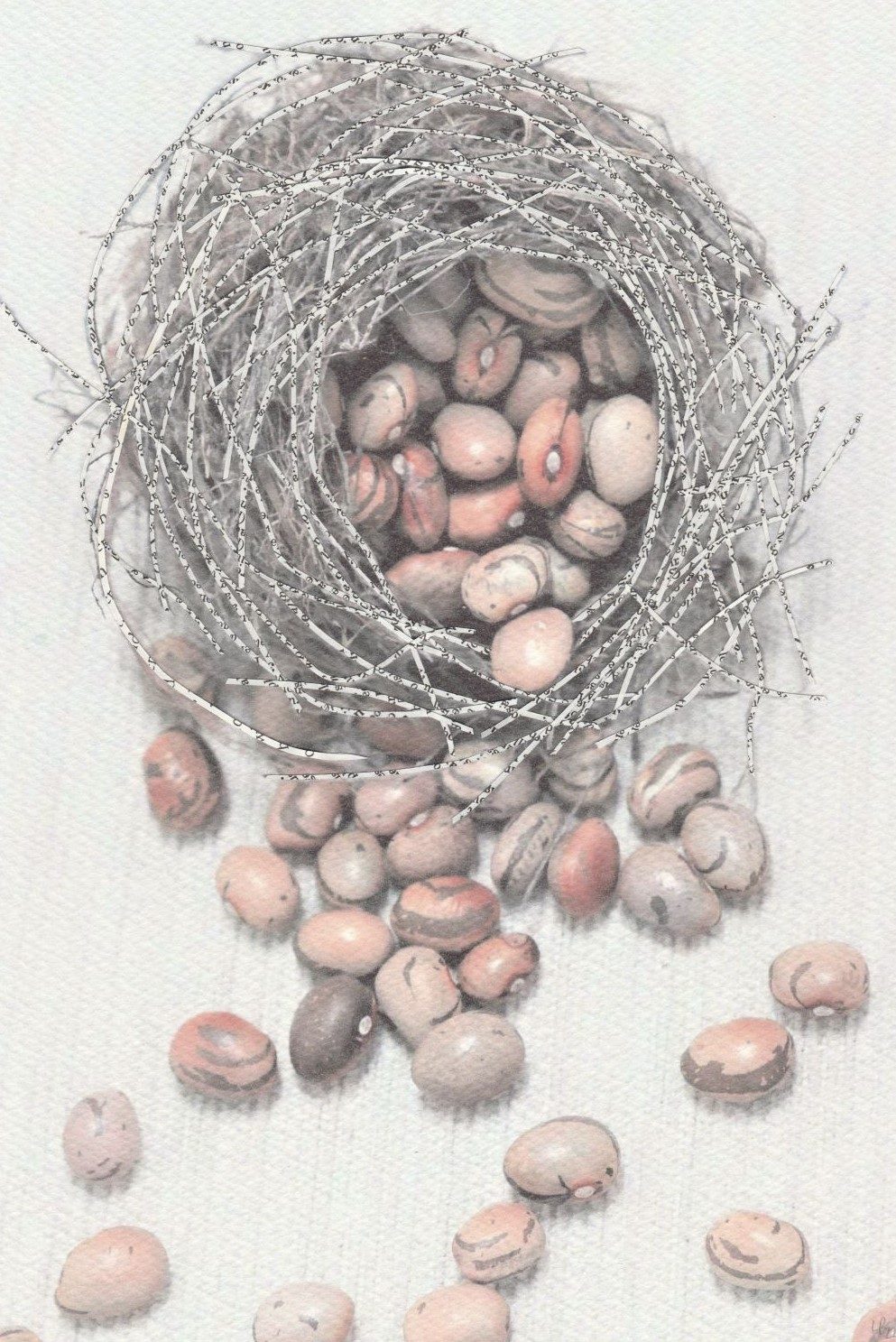 of collages combining photographs of nests with found strips of text, Nest sees Pool craftily harness the figure of the nest