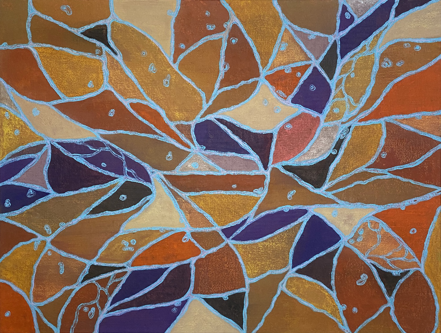 Blending representation and abstraction, the works in the exhibition have been inspired by found microscopic images of human and plant cells, ranging from healthy to diseased and deteriorating. The paintings evoke blood, skin and other celltypes, as well as drawing inspiration from the artist’s observations of aerial landscapes, stained glass windows, and geological digs. In the exhibition, viewers are invited to reflect on their relationship to - natural world - where patterns and shapes repeat themselves. McDowell uses contrasting colours, depth, texture and scale to evoke the world of micro-organisms that form, and connect all matter.