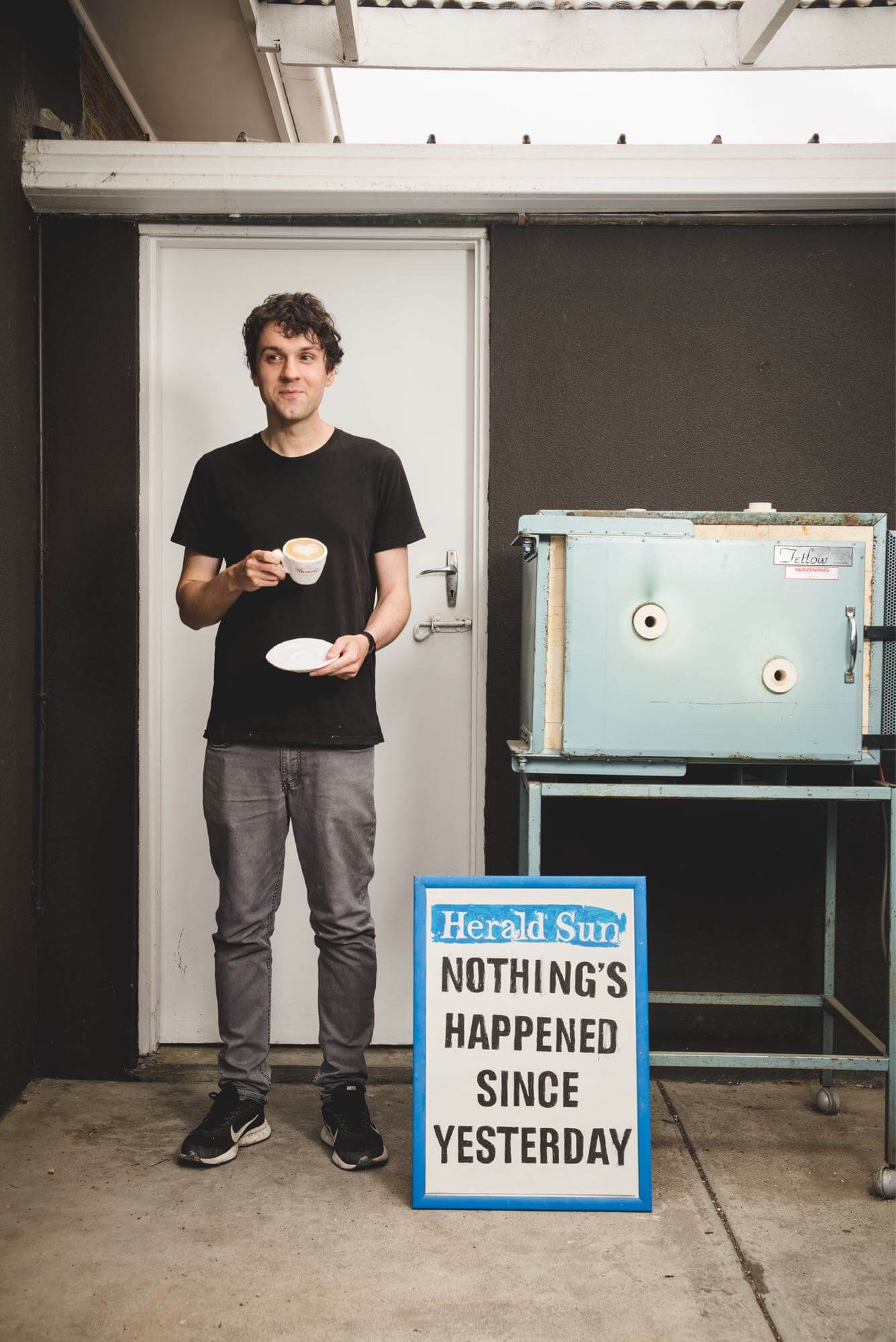 Kenny Pittock was recently included in the 30th Birthday Celebration exhibition, a group show of new work by artists who had been awarded prizes in the Linden Postcard Show. Kenny works across ceramic sculpture, drawing and painting. His humorous and playful work responds to contemporary Australian culture and celebrates the mundane.