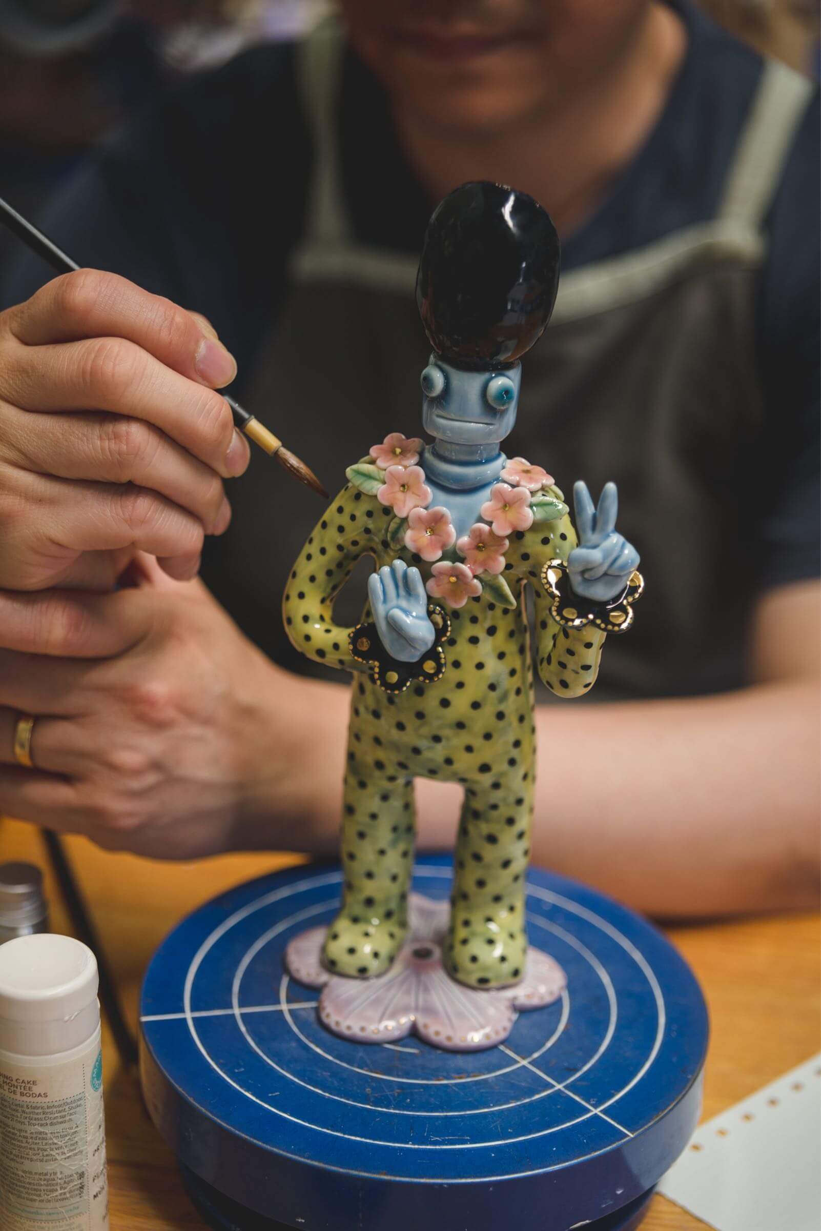 The diety must have one divine force to improve your current pandemic situation or a divine weapon that can fight off COVID-19. I selected the 19 most inspiring deities and turned them into ceramic sculptures. I also invited 19 writers to write a story about each of the deities. The drawings, the sculptures and their stories will be presented in this show, at Linden New Art.